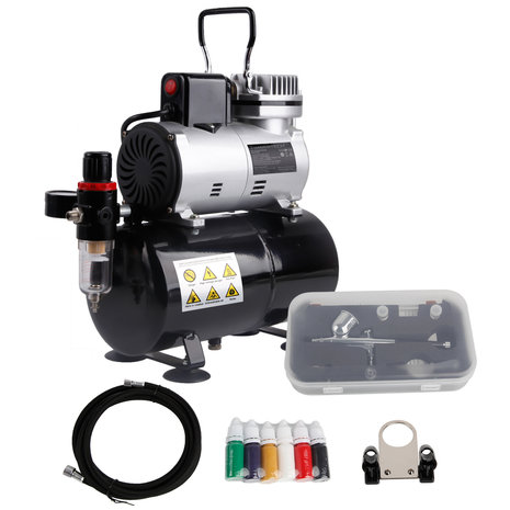 Timbertech ABPST08K complete airbrush compressor set met ingebouwde ventilator, airbrush pistool en accessoires